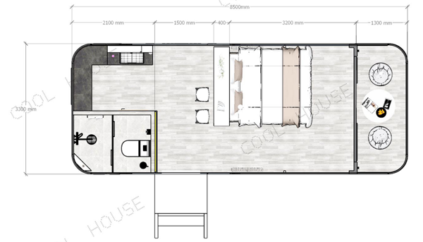 長:8.5M 寬3.3M 高3.2M 建筑面積:28㎡