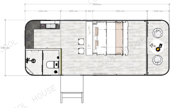 長:8.5M 寬3.3M 高3.2M 建筑面積:28㎡